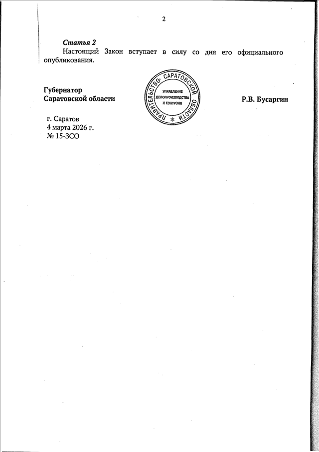 Закон Саратовской области от 04.03.2026 N 15-ЗСО "О внесении изменения в статью 16 Закона Саратовской области "О земле" (принят Саратовской областной Думой 25.02.2026)