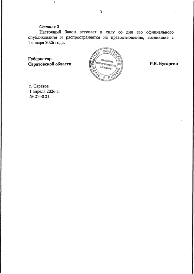 Закон Саратовской области от 01.04.2026 N 21-ЗСО "О внесении изменений в Закон Саратовской области "О некоторых вопросах муниципальной службы в Саратовской области" (принят Саратовской областной Думой 25.03.2026)